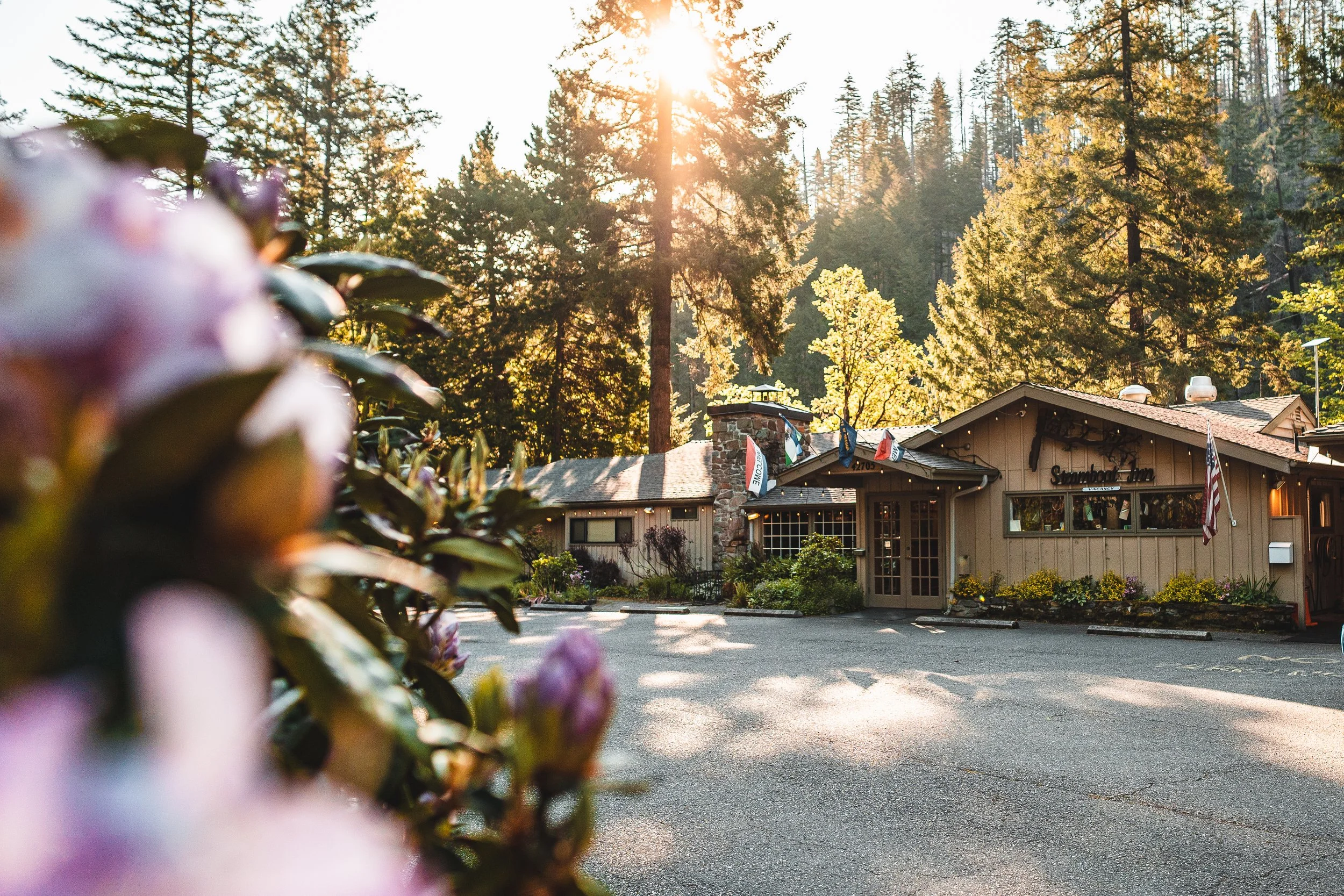From humble beginnings as a tent camp and pack mule train stop, the lodge has grown to a beautiful location surrounded by forest and gardens. The main building houses the kitchen, dining room/lobby/gift shop, and owners apartment. The Library/Bar and housekeeping building is adjacent.